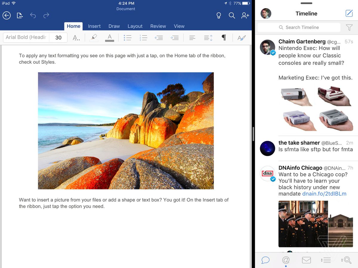 Alte aplicații acționează doar contracarat. Twitter, de exemplu, refuză să deschidă un link atunci când este o aplicație slabă din dreapta; trebuie să mergi pe jumătate de ecran. Cu toate acestea, Tweetbot funcționează excelent și, de asemenea, va transmite tweet-uri automat atunci când este așezat lateral.