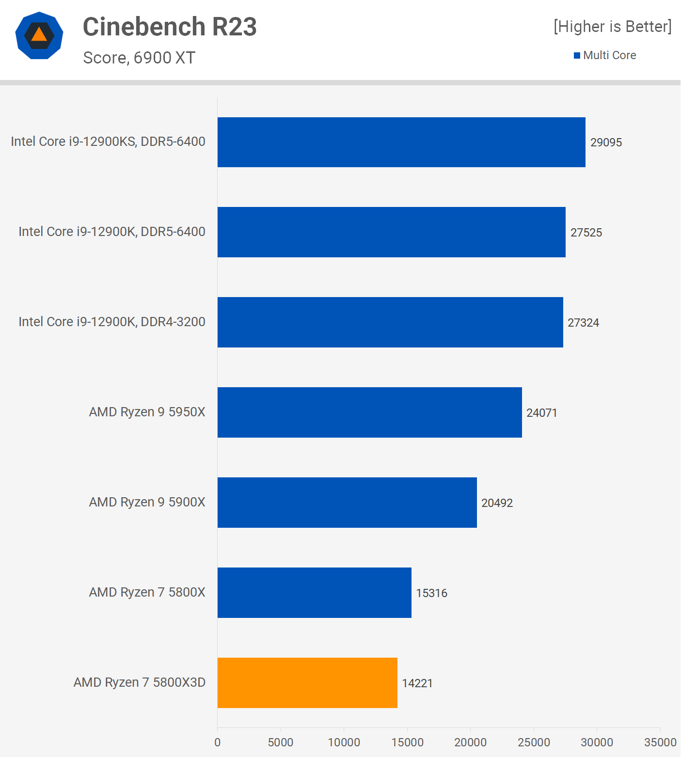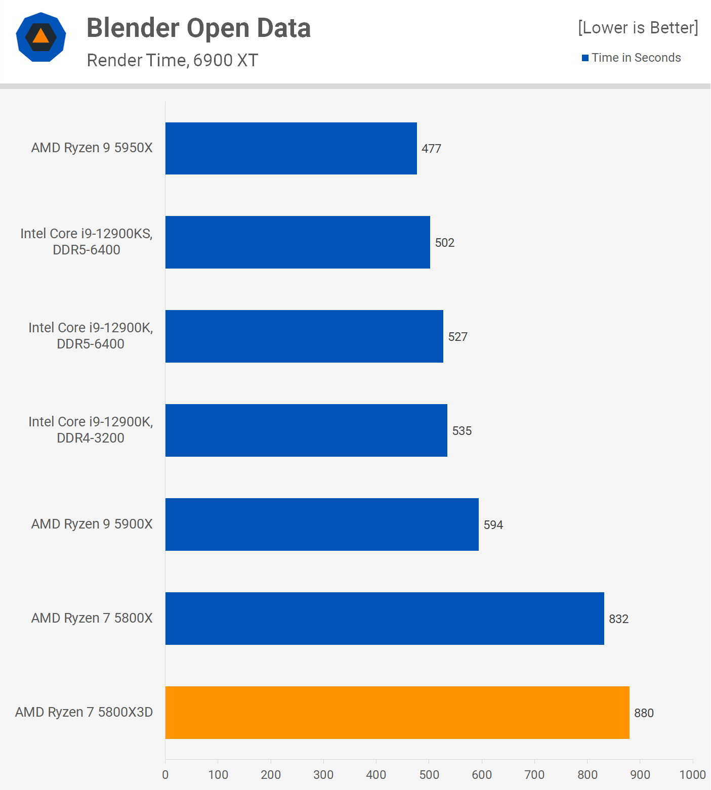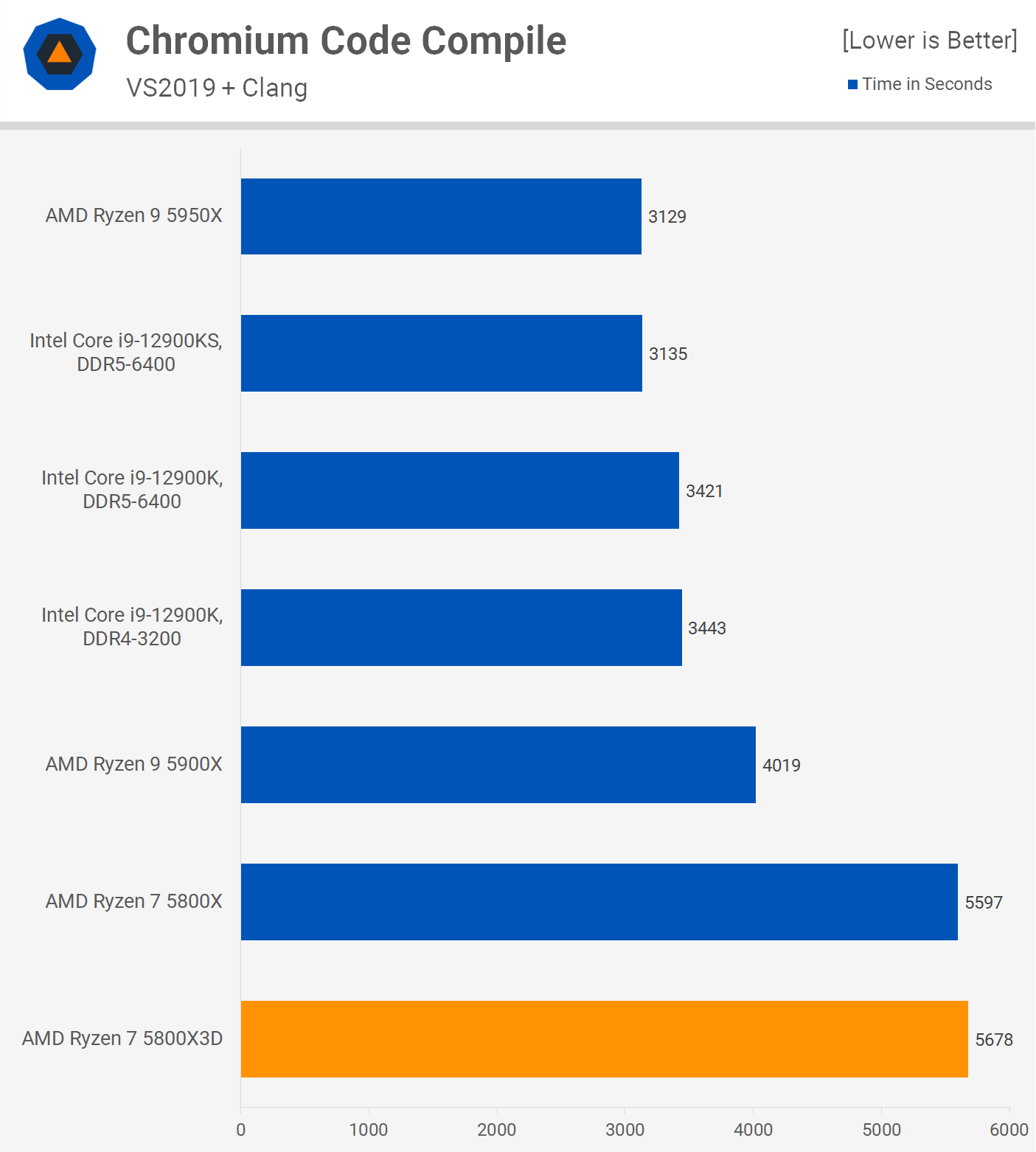 Aceasta a înregistrat încă o creștere a performanței cu 19% pentru 5800X, iar atunci când se folosește aceeași memorie DDR4-3200, 5800X3D a fost cu 4% mai rapid decât 12900K.