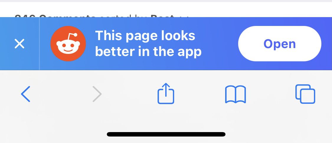 Cu toate acestea, am o mare plângere cu site-ul mobil: îmi pune în mod constant un banner mare în față, sugerând să abandonez toate acestea și să instalez în schimb aplicația. Iată o imagine a acelui banner de pe telefonul meu, pe care este posibil să o fi văzut înainte: