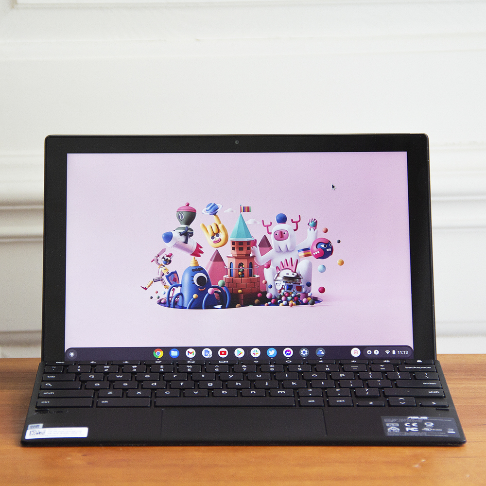Una peste alta, Chromebook-ul Asus CM3 detașabil este un pachet frumos. Este o tabletă de 10,5 inci, cu un capac de țesătură atașat magnetic și suport. Este testat 389,99 USD, ceea ce înseamnă că are un preț mult sub toate tipurile de Chromebookuri convertibile. Nu sunt primul care face această comparație, dar este o versiune puțin mai scumpă și puțin mai elegantă a Lenovo Chromebook Duet de 269 USD, care m-a impresionat atât de mult anul trecut.