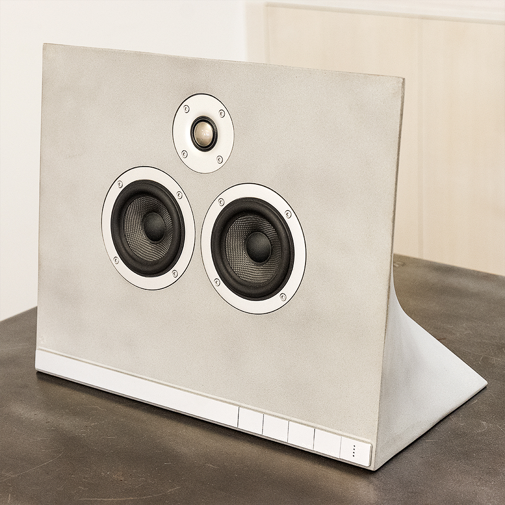 În cadrul acestui bloc de beton, proiectat de matematică și sunet, sunt două woofere duble de 4 inci, țesute cu Kevlar și un tweeter de titan de 1,5 inci chiar deasupra și dedesubtul comenzilor din aluminiu anodizat tăiat cu diamant. Este piesă de artă egală și difuzor.