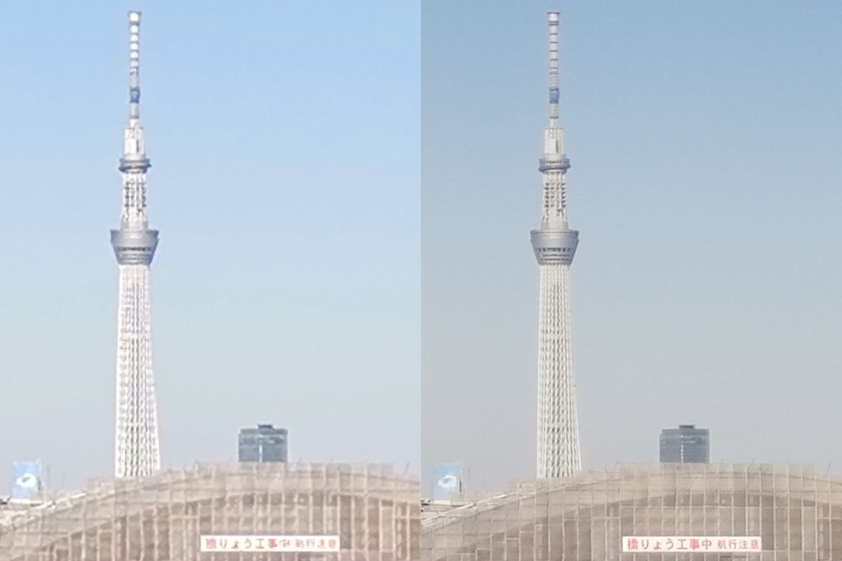 În primul rând, iată o fotografie de 12 megapixeli făcută cu fața către Tokyo Skytree în jurul orei 14:00 într-o zi însorită, fără nori. Cu alte cuvinte, acestea sunt cele mai bune condiții posibile pentru ca micuții pixeli să își facă treaba. View 20 este în stânga, iPhone XS Max este în dreapta.