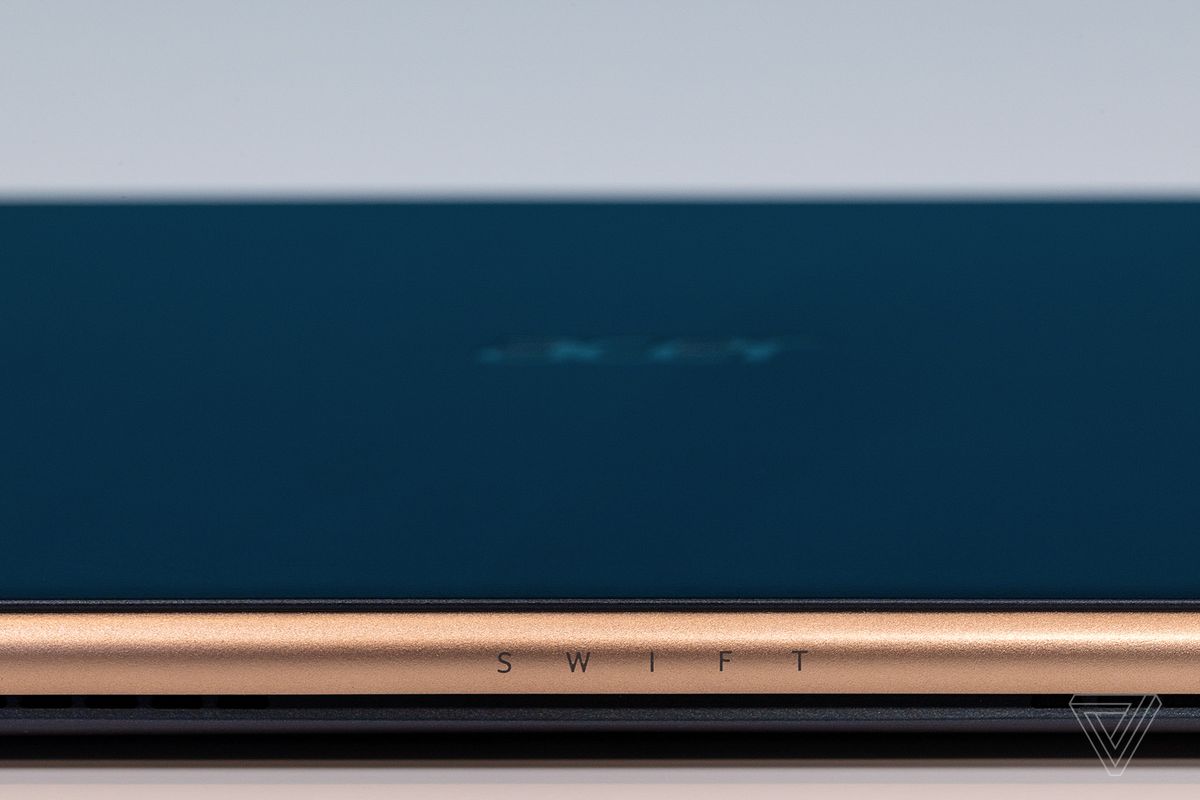 Există câteva noi înfloriri care fac ca modelul de 14 inci să arate puțin mai bine. A dispărut griul: noul 14 are o nuanță mai elegantă, care din punct de vedere tehnic este albastru închis, deși mi se pare foarte negru și multiplu Verge angajații care treceau au insistat că este un verde închis. Logo-ul Acer și balama sunt ambele acum aurii și arată subtil șic pe fundalul întunecat. (Din păcate, partea colorată a balamalei se pliază sub punte când laptopul este deschis, deci nu este vizibil de cele mai multe ori.)