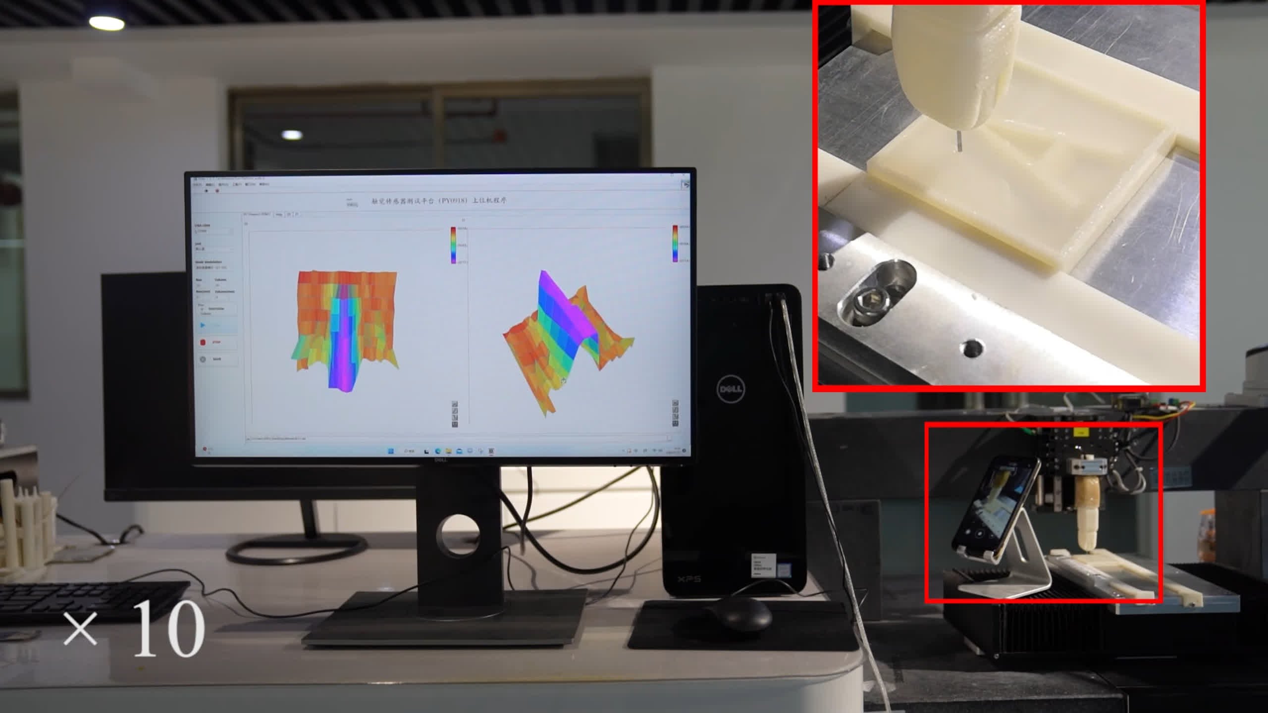 Datele colectate prin acest proces sunt în cele din urmă redate într-o hartă 3D pe un afișaj, oferind o idee vizuală a caracteristicilor suprafeței. Cercetătorii au testat capacitățile degetului robot inteligent prin cartografierea unei litere rigide „A” situată sub un strat de siliciu moale și a unui model fizic imprimat 3D de țesut uman cu trei straturi de polimer dur („scheletul”) și un material moale. stratul exterior de silicon („mușchii”). În acest din urmă caz, degetul bionic a putut chiar să simtă „vasul de sânge” situat sub stratul muscular.