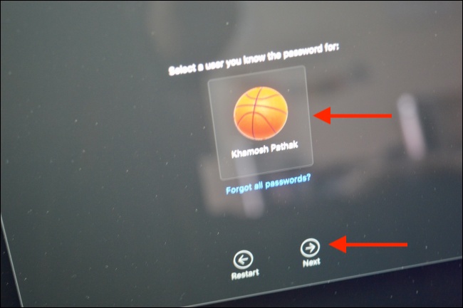 Acum, Mac-ul dvs. vă va cere să selectați un utilizator. Alegeți utilizatorul și faceți clic pe butonul „Următorul”.