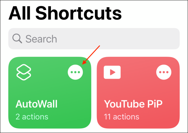 Acum, accesați fila „Comenzile mele rapide” și atingeți butonul meniului cu trei puncte de pe comanda rapidă „AutoWall”.