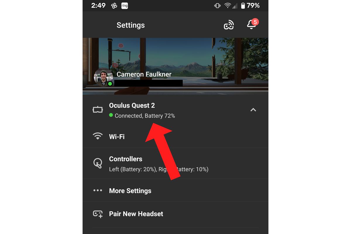 - Dacă nu o cunoașteți, o puteți găsi deschizând aplicația Oculus pe mobil, navigând la „Setări”, apoi atingând zona care vă arată numele și adresa de e-mail. Numele care va fi afișat lângă avatarul dvs. este numele dvs. de utilizator.