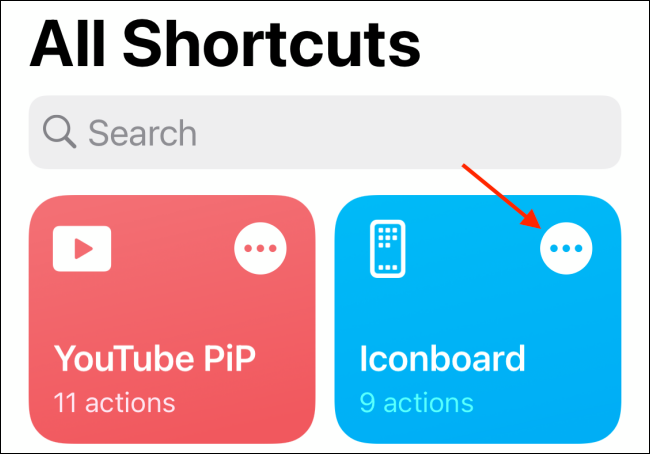 Accesați fila „Comenzile mele rapide” și găsiți comanda rapidă pe care doriți să o adăugați la Apple Watch. Apoi atingeți butonul de meniu cu trei puncte din colțul din dreapta sus al comenzii rapide.