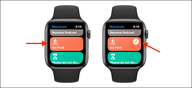 Pentru a declanșa comanda rapidă, pur și simplu atingeți comanda rapidă de pe fața ceasului. Apoi, atingeți butonul „Run” pentru a rula comanda rapidă.