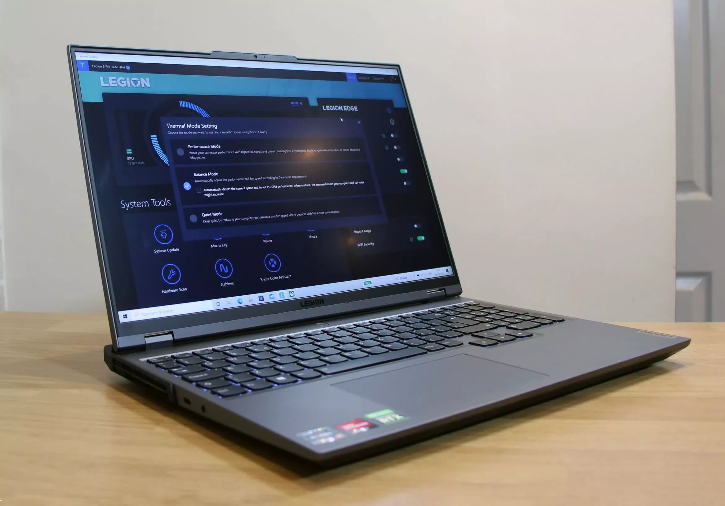 Restul specificațiilor Legiunii sunt decente. Ryzen 7 5800H cu 8 nuclee de la AMD rulează cu un nivel de putere de vârf de 45 W, care se află chiar la mijlocul gamei sale. Există 16 GB de memorie cu două canale tactate la o viteză solidă de 3200 MHz, iar SSD-ul de 512 GB oferă viteze de citire și scriere de 3.569 MB/s și 2.802 MB/s. Acestea sunt viteze bune pentru munca și jocurile de zi cu zi și mențin aparatul rapid, dar cele mai bune unități sunt de două ori mai rapide și o unitate de 1 TB ar fi fost mai bună pentru colecțiile mari de jocuri. Cel puțin, există o cale ușoară de upgrade în viitor.