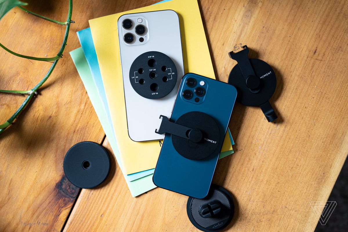 Moment oferă în prezent un suport de perete lipicios, un suport de aerisire pentru mașină, un suport de pantof rece, un pantof rece și suport de filet de ¼ ”, atât în ​​orientare portret, cât și peisaj, un suport de filet de ¼” și un suport multi-filetat. Pucks în sine sunt discuri din oțel inoxidabil cu un finisaj mat. Sunt doar cantitatea potrivită de grele: se simt durabile și gata să fie puse în acțiune, menținând în același timp o conexiune magnetică extrem de puternică la iPhone 12 Pro pe care îl foloseam.