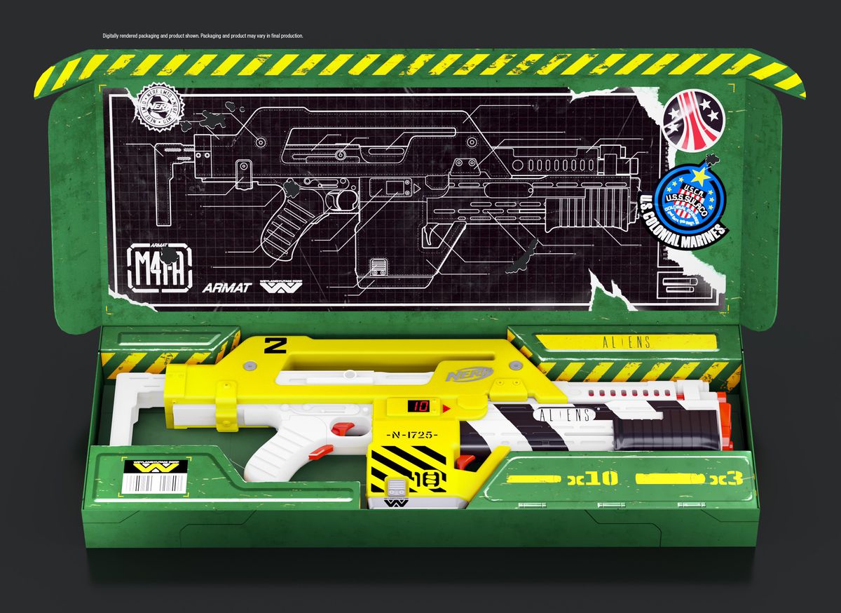 De ani de zile, fanii blasterului de jucărie au încercat să reproducă caracteristicile și funcționalitatea iconicului Extraterestrii Puls Rifle, transformând replicile lor de airsoft Thompson și blasterele Nerf în recuzită la scară largă. De multe ori legau cu fermoar sau amestecau propriile blastere ale lui Nerf sub RapidStrikes sau Stryfe pentru a obține un blaster sub țeavă ca acesta. Preferatul meu de până acum este Stryfle de la Campbell Nerf Works, un set de piese imprimat 3D pe care îl puteți folosi pentru a combina un Stryfe și un Magnus fără mâner cu un mare efect:
