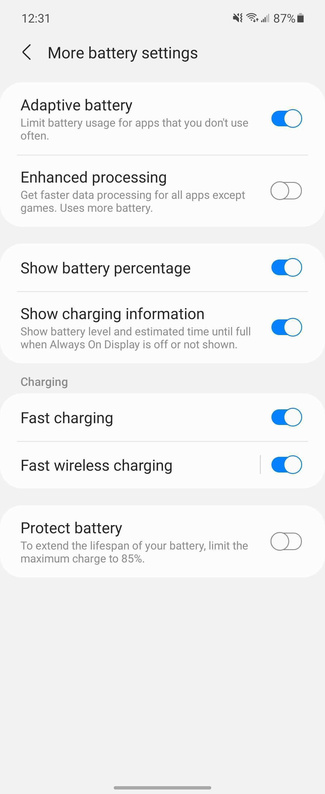 Funcția, care este disponibilă în aplicația Setări sub Îngrijirea dispozitivului > Baterie > Mai multe setări ale bateriei, vine cu compromisul evident de a limita durata maximă de viață a bateriei pe care o veți obține de la fiecare telefon la fiecare încărcare. În recenziile noastre, am observat că atât Z Fold 3, cât și Z Flip 3 au o durată de viață implicită de aproximativ o zi, ceea ce înseamnă că ar putea fi necesar să vă angajați la o reîncărcare la amiază dacă încărcați doar la 85 la sută.