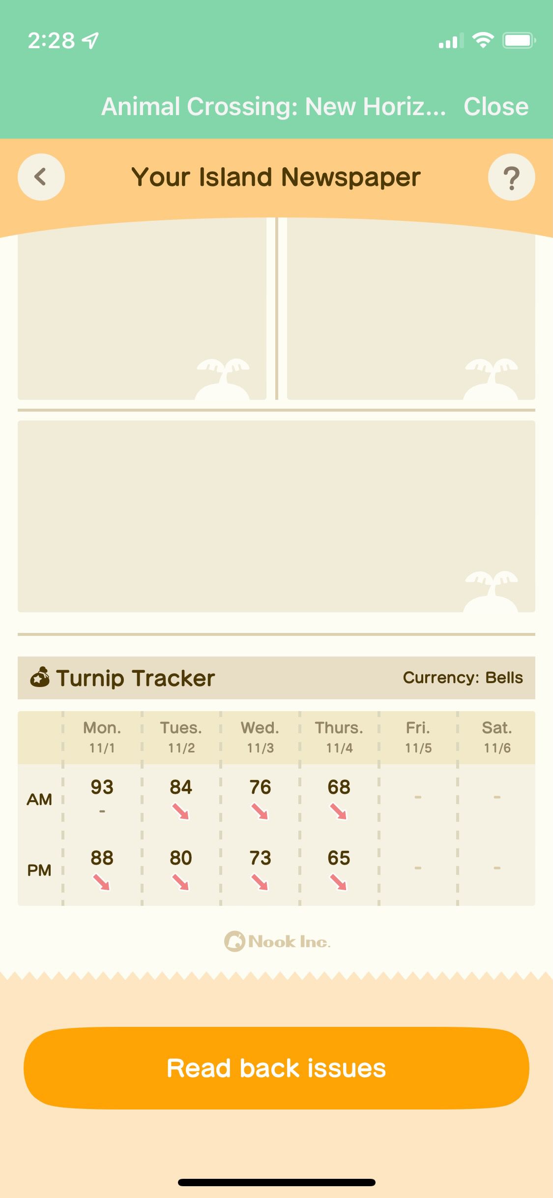 Nintendo a adăugat în liniște un instrument de urmărire a prețului napului pentru Animal Crossing: New Horizons la aplicația Nintendo Switch Online, dar nu este atât de util pe cât speram. În mod dezamăgitor, trackerul nu afișează prețul actual al napului de pe insula dvs. În schimb, listează prețurile istorice din ultima săptămână.