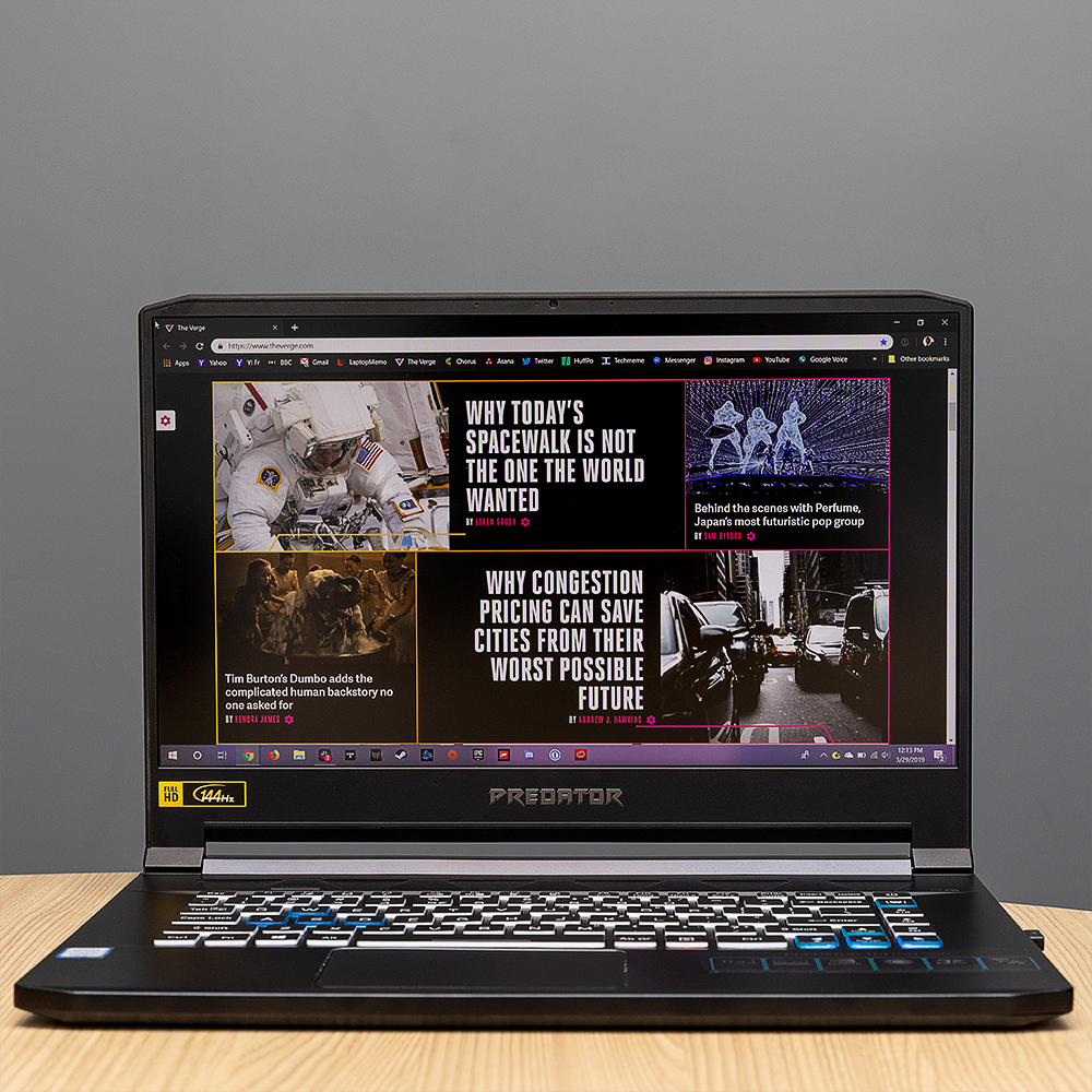 Ca o mașină de productivitate, Triton 500 a fost satisfăcătoare de utilizat. Configurația unității noastre cântărește 4,41 de lire sterline și nu îmi cântărește rucsacul prea mult în timpul navetei. Tastatura cu profil redus funcționează bine, are o deplasare confortabilă a tastelor la 1,6 mm, vine cu taste care sunt mai mari decât veți găsi pe un Razer Blade și are iluminare RGB cu trei zone pe care o puteți folosi într-o cameră slab luminată . Există, de asemenea, chei de control hardware dedicate pe partea dreaptă pe care le apreciez cu adevărat. Volumul, redarea, puterea și „PredatorSense” sunt ușor de distins și, cel mai bine, nu interferează cu alte taste din aspectul tastaturii Triton 500. Nu aș putea suporta un alt laptop cu o cheie neobișnuit plasată.