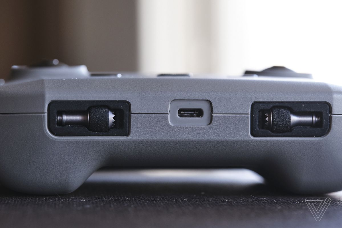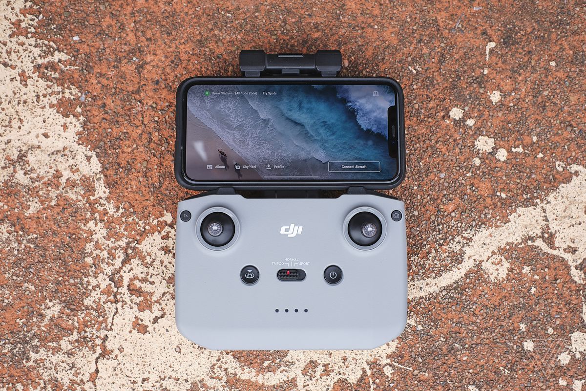 O altă mare schimbare – și vreau să spun mare – este noul controler. Este aproape de două ori mai mare decât orice alt controler DJI, cu excepția controlerului inteligent opțional de 749 USD. Nu are ecran și nu există antene vizibile care să iasă. Suportul telefonului este mutat în partea de sus și este cu arc. Cred că întregul design are mult mai mult sens. De asemenea, este mult mai confortabil de ținut. Dacă ar fi să nitpick, singura mea dorință este ca butoanele funcției personalizate să fie în partea de jos a controlerului în loc să fie pe lateral.