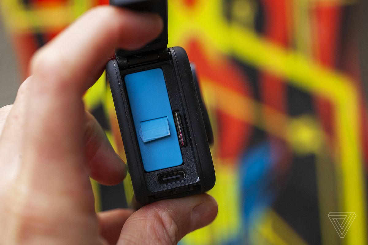 Cu dimensiunea mai mare vine un ecran tactil din spate mai mare, cu diagonala de 2,27 inci. Are același port USB-C, slot pentru card microSD și compartimentul bateriei pe o parte, împreună cu butonul de pornire / oprire din partea de sus și butonul de alimentare și de mod din lateral. Există, de asemenea, această piesă ciudată cu aspect de zăvor pe o parte, pe care am crezut-o că poate fi detașată, dar nu este. GoPro îl numește „Mic de scurgere” și a explicat că este conceput să se scurgă după ce camera este scufundată, ceea ce ar trebui să facă un sunet mai clar atunci când ieșiți din apă.