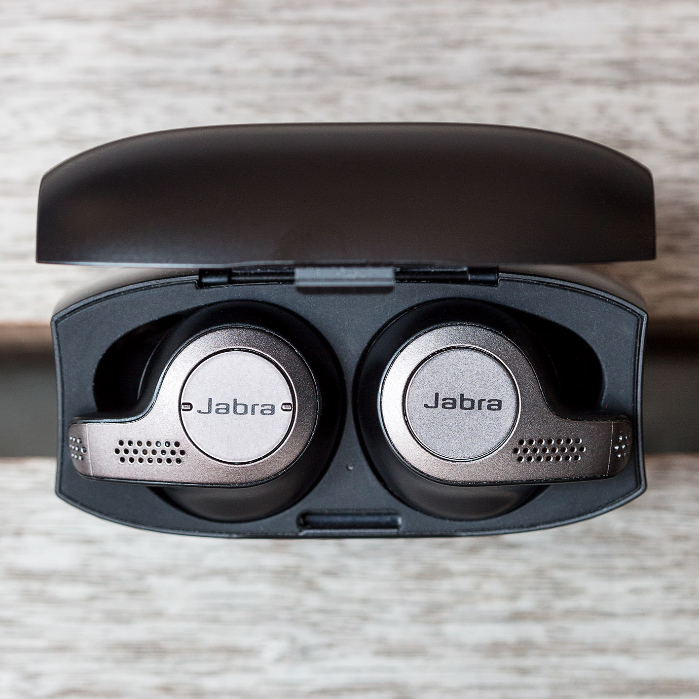 Funcționează la fel de efort ca AirPods? Nu în ceea ce privește configurarea. Trecerea prin împerecherea tradițională Bluetooth nu va fi niciodată la fel de mișto și fără probleme ca să țineți o carcasă AirPods lângă dispozitivul dvs. iOS și să le conectați instantaneu. Dar a începe cu Jabras este cel puțin foarte simplu. Deschideți carcasa neagră mată, le introduceți în urechi și o voce vă va solicita să deschideți setările Bluetooth de pe dispozitiv și să le selectați. Se pot împerechea simultan cu două dispozitive, ceea ce este foarte util. Îmi place foarte mult feedbackul vocal oferit de aceste căști; nu sună prea mult la robot și nu există tonuri audio inutile care să devină foarte grele, precum cele de pe căștile Jaybird. De mai multe ori, căștile din stânga nu au reușit să se aprindă când au fost scoase din carcasă, dar fixarea care necesită menținerea apăsată a butonului pentru o secundă și se sincronizează imediat.
