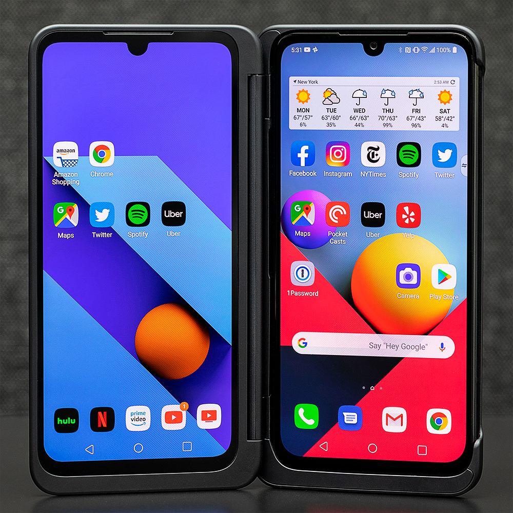 Cu G8X deblocat și ecranul dual activat, veți vedea cum arată două telefoane identice, dar separate. Al doilea ecran nu se distinge de G8X – are chiar același decupaj de crestătură, în ciuda lipsei camerei – și vine cu propriul aspect de acasă și sertarul de aplicații. Nu este ca Galaxy Fold, unde pixelii suplimentari vă oferă mai mult spațiu pe ecran. De cele mai multe ori, în afară de posibilitatea de a extinde Chrome pe ambele ecrane, veți rula doar două aplicații obișnuite de telefon una lângă alta.