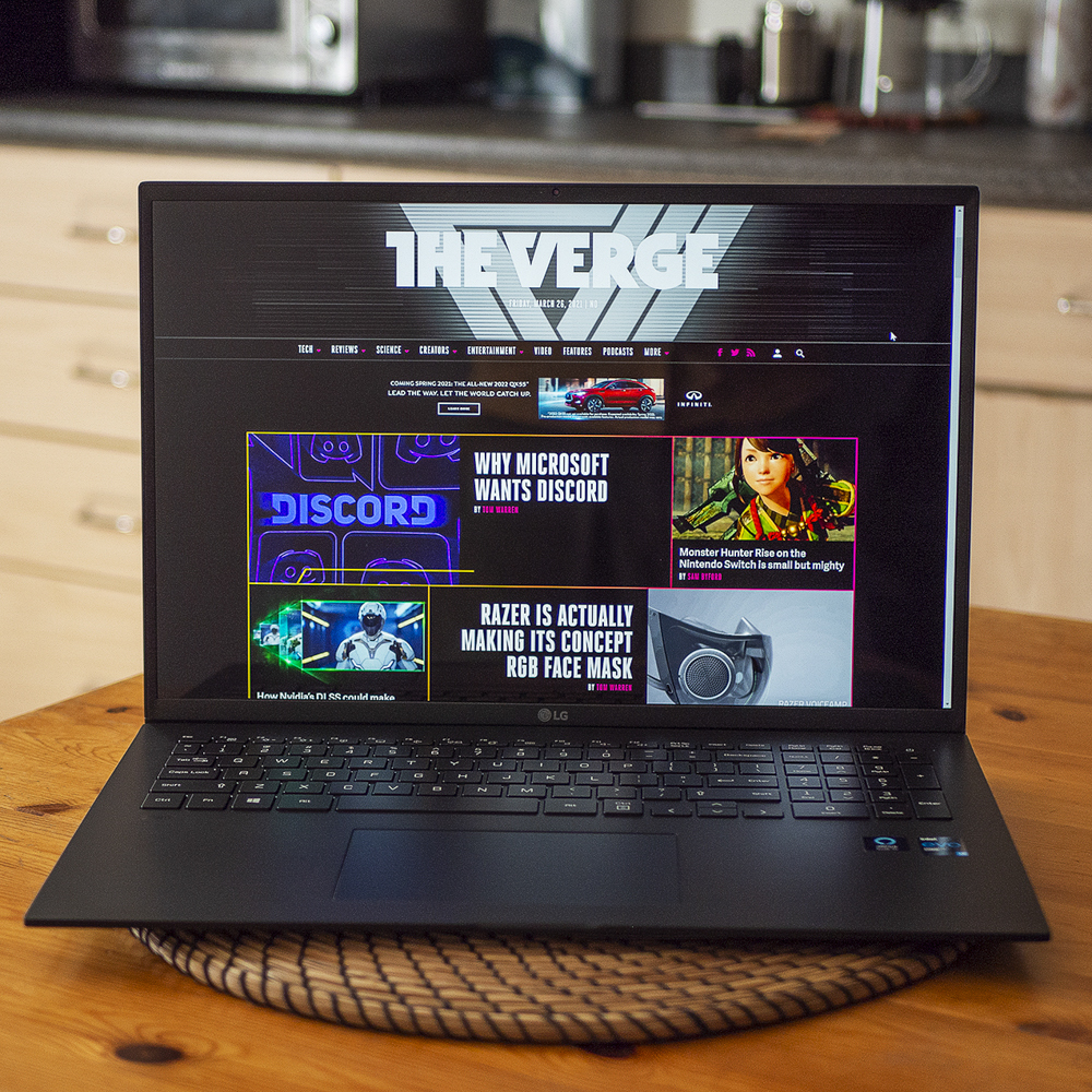 În timp ce rulam colecția mea obișnuită de aproximativ 10 file în Microsoft Edge pentru lucru, cu Slack și Spotify rulând în tandem, performanța nu s-a bâlbâit deloc. Acesta este minimul de teste de competență pentru laptopuri, așa că pentru ceva mai solicitant, am exportat un fișier de test de cinci minute și 33 de secunde din Verge echipa video prin Adobe Premiere Pro. Modelul de anul trecut a durat 30 de minute pentru a face acest lucru, dar acesta îl face în aproximativ 11 minute. Acest lucru nu ține o lumânare laptopurilor care pun mai mult accent pe putere, de obicei în detrimentul greutății, dar este suficient o îmbunătățire pentru a face prețul Gram 17 puțin mai ușor de justificat. Razer’s Book 13 cu același procesor a avut o durată de aproximativ un minut mai rapid cu acest test, dar Gram este la egalitate cu cele mai recente Dell XPS 13 și Asus ZenBook 14.