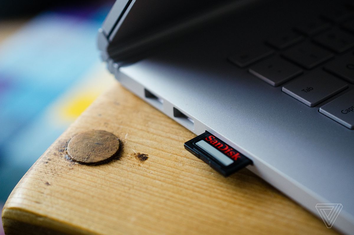 Microsoft a păstrat cititorul de card SD de dimensiuni complete.