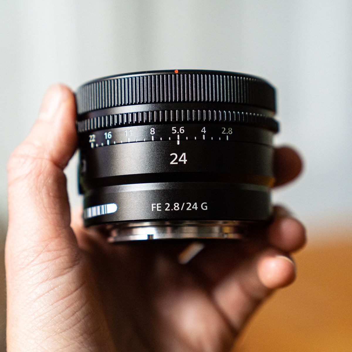 Obiectivul Sony de 24 mm f / 2.8 este ușor și compact, potrivindu-se perfect pentru camera A7C.
