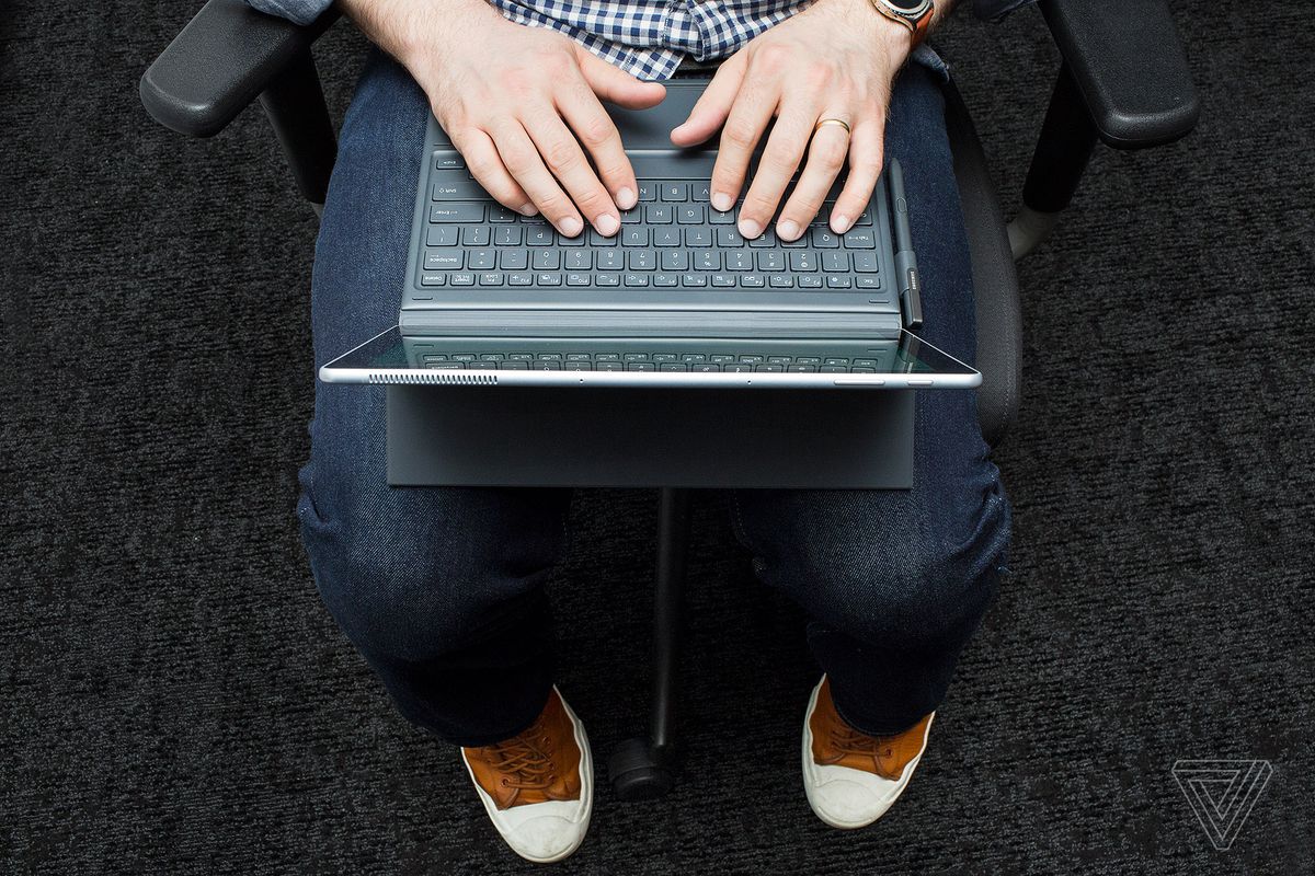 Ar trebui să clarific: este stabil dacă folosiți Cartea pe o masă sau pe un birou. Este o poveste complet diferită în poala mea, în care carcasa tastaturii este dischetă și extrem de incomodă. Mai rău, spre deosebire de TabPro S de anul trecut, care avea o bază scurtă și plată, carcasa cărții are o amprentă foarte lungă, ceea ce face ușor să alunec de pe genunchi și imposibil să se încadreze pe masa tăvii de avion care se micșorează mereu. Atât Surface Pro, cât și iPad Pro cu tastatură inteligentă sunt mult mai ușor de folosit ca laptopuri în poala mea.