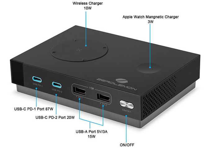 Există un nou campion în oraș – dacă orașul în care vă aflați este plin de moduri de a încărca laptopuri, smartphone-uri, tablete și alte dispozitive. Noua stație de încărcare ZeroLemon Extreme este cel mai puternic încărcător USB multidevice pe care l-am folosit vreodată. Oferă o putere de până la 135W pe cele două porturi USB-C, două porturi USB-A, pad de încărcare Qi și docul Apple Watch. Are doi fani pentru a menține lucrurile răcoroase și totul are dimensiunea unei cărți mici de broșură. (Arată ca o mini consolă de jocuri Xbox.) ZeroLemon desfășoară în prezent o campanie Kickstarter până la sfârșitul lunii august și se așteaptă să livreze stația de încărcare extremă în octombrie pentru 99 USD.
