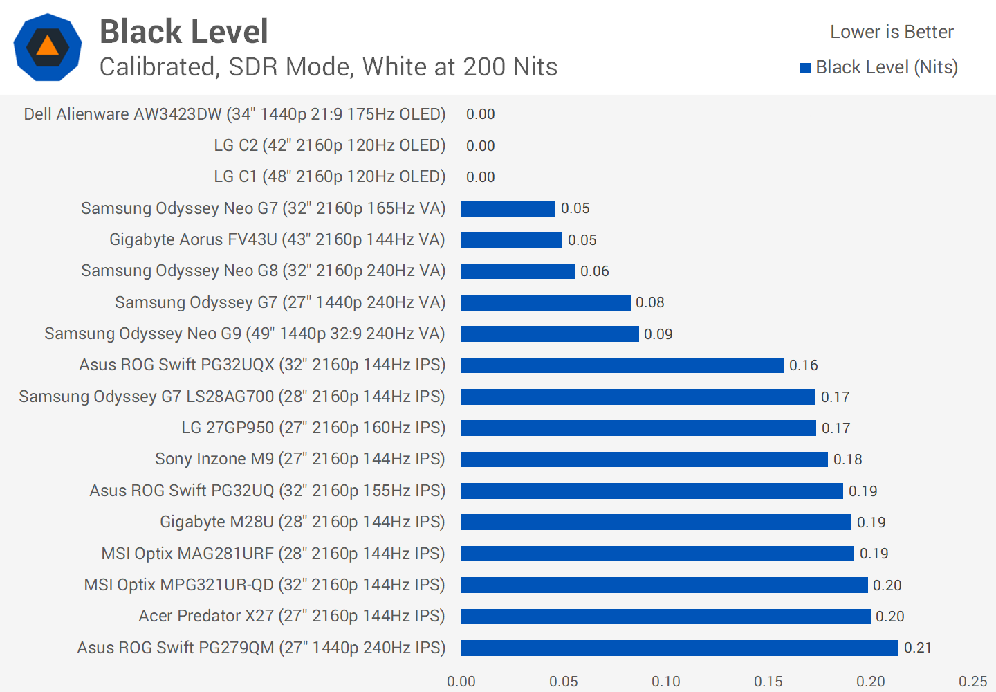 Cu toate acestea, între pachetul OLED, nu există nicio diferență între C2, C1 și QD-OLED AW3423DW de la Alienware, toate oferind o experiență de aproximativ 1 ms. Ar trebui să reținem că recent am recalibrat și actualizat rezultatele noastre OLED pentru a fi și mai precise, așa că acestea sunt numere proaspete care pot diferi ușor de recenziile originale atunci când le-am publicat.