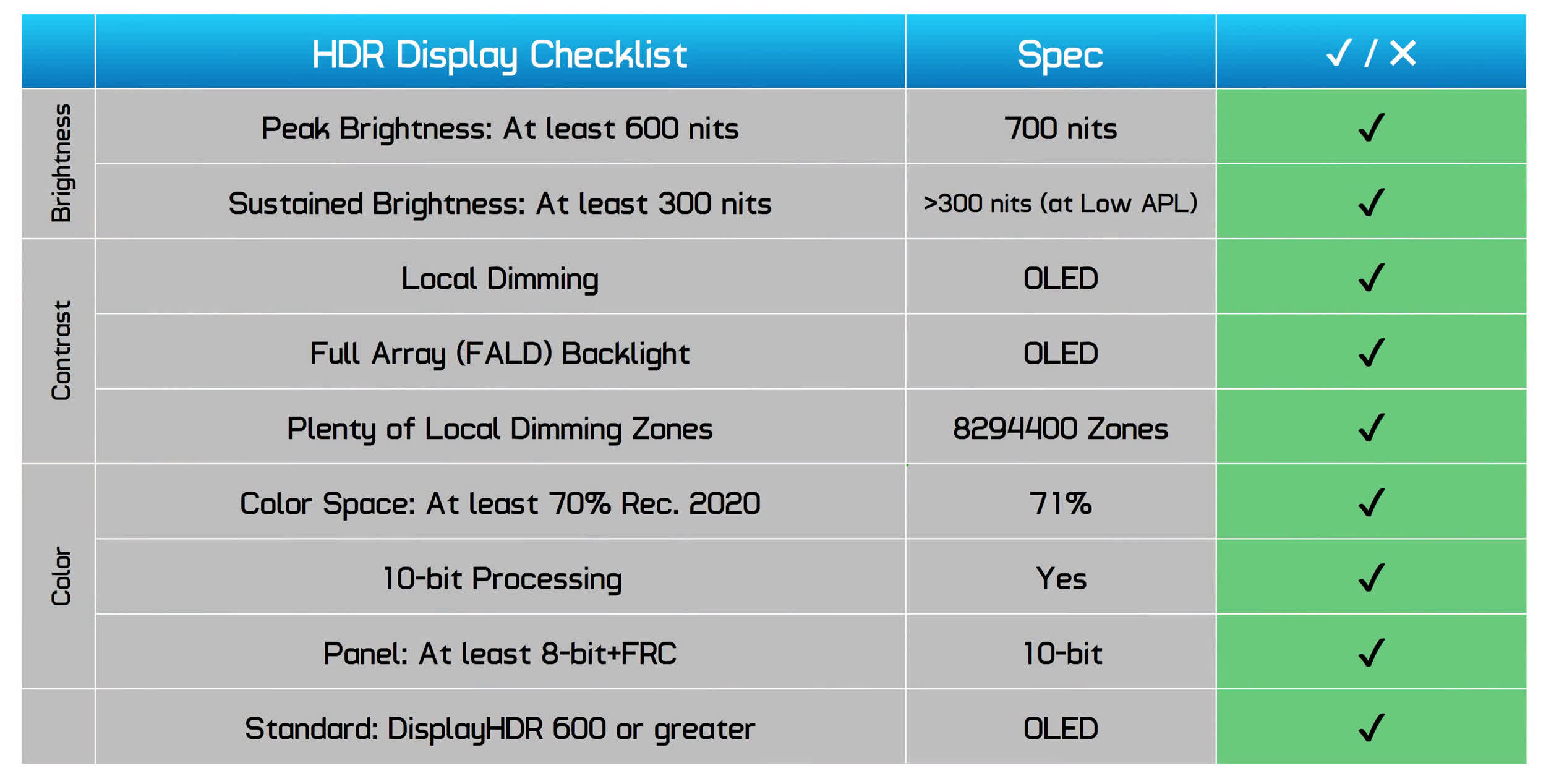 LG C2 este un ecran HDR fantastic. Cu un panou OLED, fiecare pixel individual este iluminat automat, oferind cel mai bun raport de contrast posibil dintr-o tehnologie modernă de afișare. Nu numai că C2 îndeplinește lista noastră de verificare HDR, dar numărul său efectiv de zone de peste 8,2 milioane depășește cele mai bune monitoare LCD cu gamă completă reglată local, care depășesc 1200 de zone mediocre în comparație.