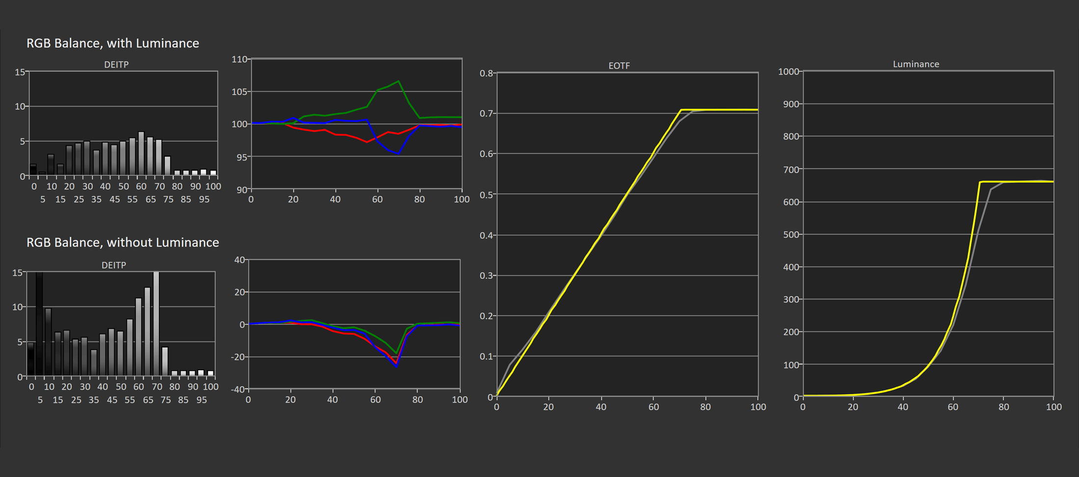 Nivelul mediu de imagine al multor conținut de film tinde să fie sub 25%, în cazul în care C2 poate atinge aproape 400 nits. Luminozitatea maximă este, de asemenea, puțin mai mare decât cea susținută la câteva dimensiuni de fereastră, dar nu într-o măsură care să afecteze semnificativ calitatea imaginii. În cele din urmă, credem că acesta este un nivel bun de luminozitate pentru HDR, dar nu cel mai bun, deși simțim în continuare că experiența HDR generală este remarcabilă atunci când este combinată cu raportul de contrast și capacitatea de atenuare.