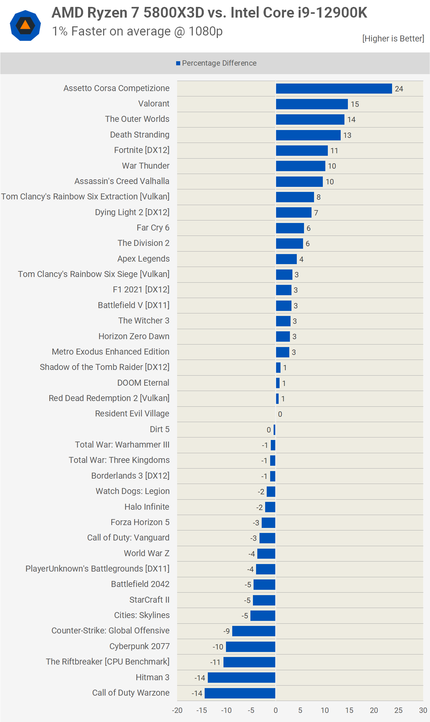 Prima pagină » Ryzen 7 5800X3D vs. Core i9-12900K în 40 de jocuri