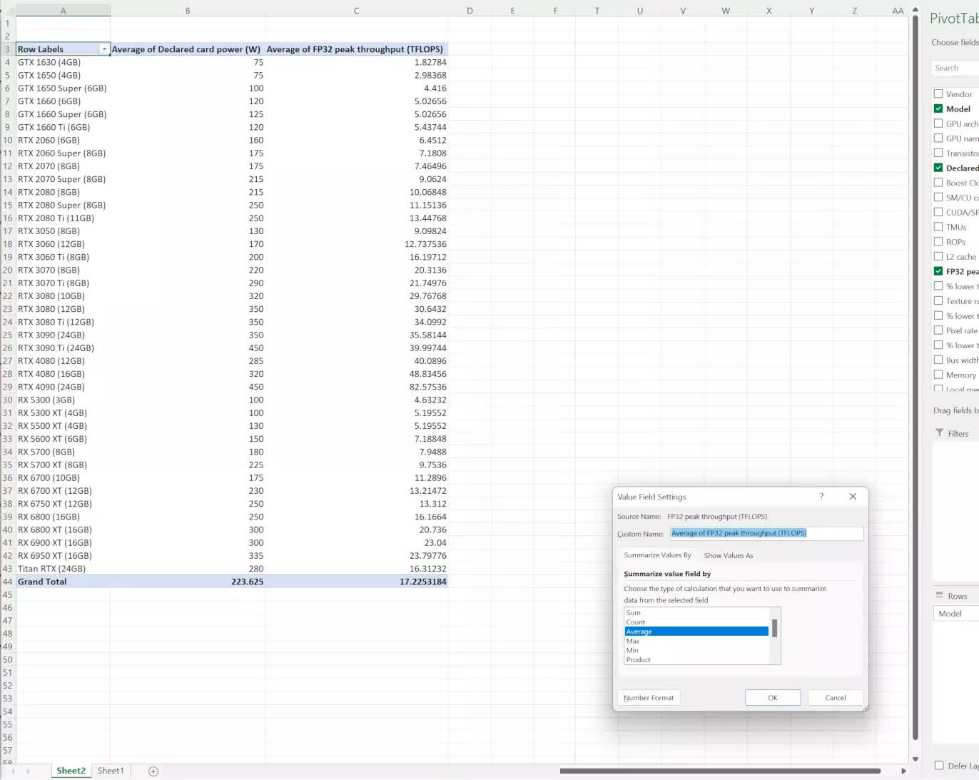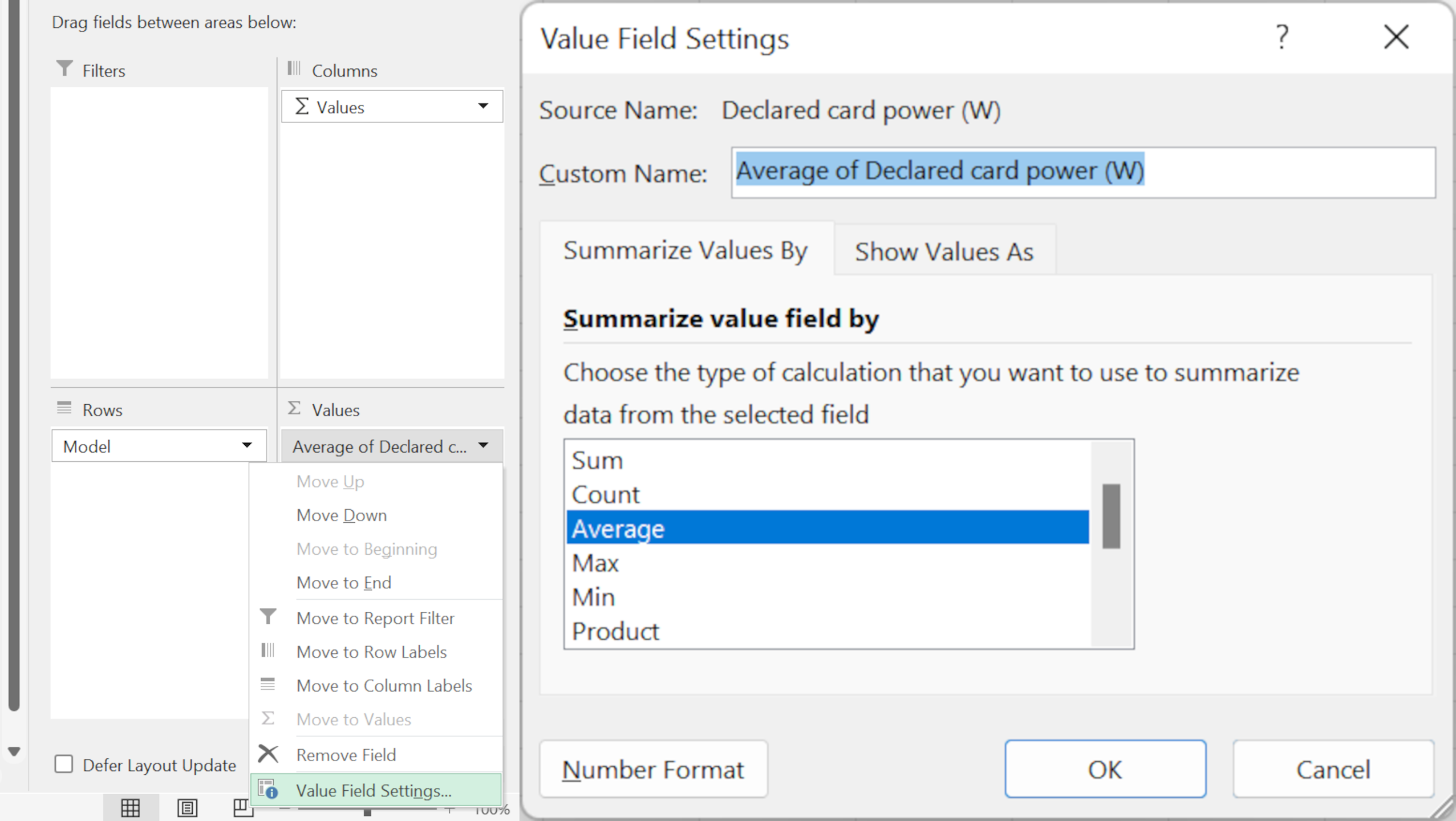 În mod implicit, procesul adaugă o sumă totală la fiecare coloană afișată, dar acest lucru este ușor de schimbat accesând secțiunea Valori din colț. Faceți clic pe săgeata meniului derulant, selectați opțiunea de jos și bun, bun!