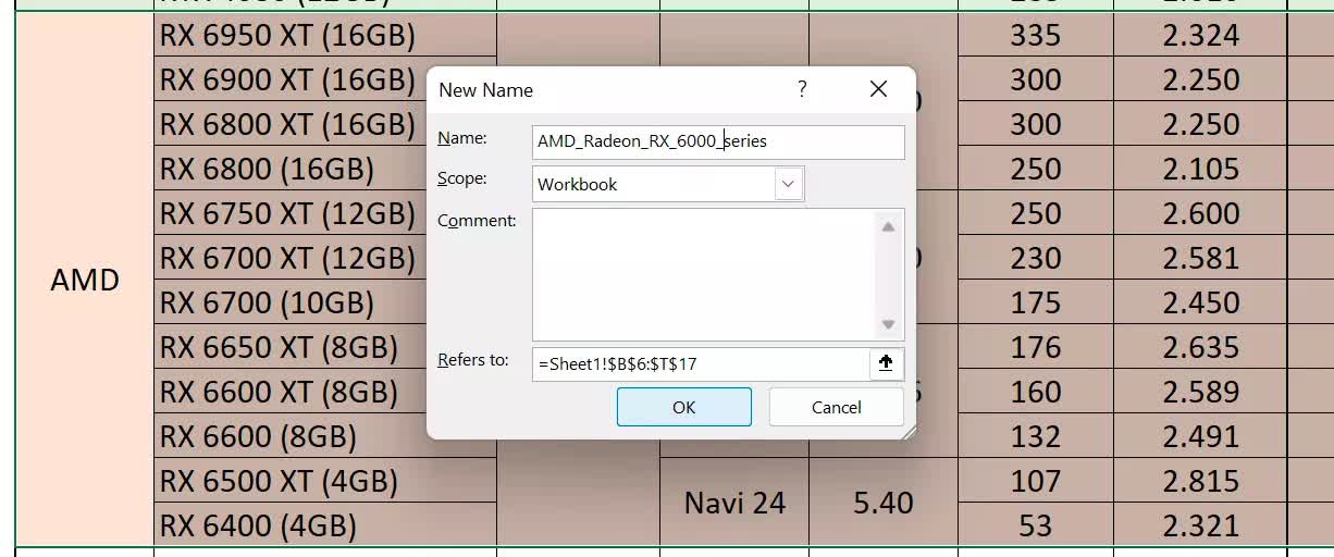 Pentru a face acest lucru, evidențiați partea din tabel pe care doriți să o denumiți, apoi mergeți la secțiunea Formule a panglicii (ALT, M) sau faceți clic dreapta pe secțiunea evidențiată. Veți vedea opțiunea Definire nume și făcând clic pe aceasta se va deschide o fereastră nouă.