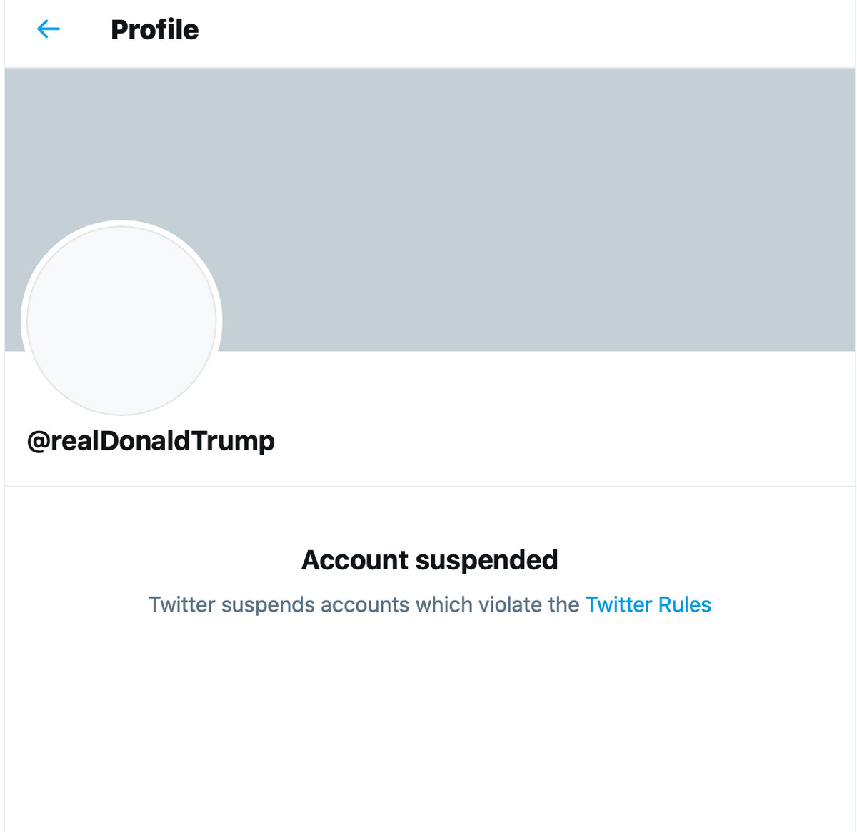 La acea vreme, Twitter a declarat că Trump va fi interzis definitiv dacă va continua să încalce regulile sale, inclusiv cele din jurul integrității civice sau amenințărilor violente. Twitter a declarat într-o declarație vineri că două noi tweet-uri postate de la suspendarea inițială a lui Trump au încălcat regulile platformei, determinând suspendarea permanentă.