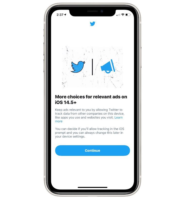 Este o încercare surprinzător de redusă de a determina utilizatorii să permită Twitter să le urmărească, având în vedere că compania a evidențiat adăugarea de către Apple a transparenței de urmărire a aplicațiilor în iOS 14.5 ca un risc potențial în declarația sa recentă de câștiguri (PDF):