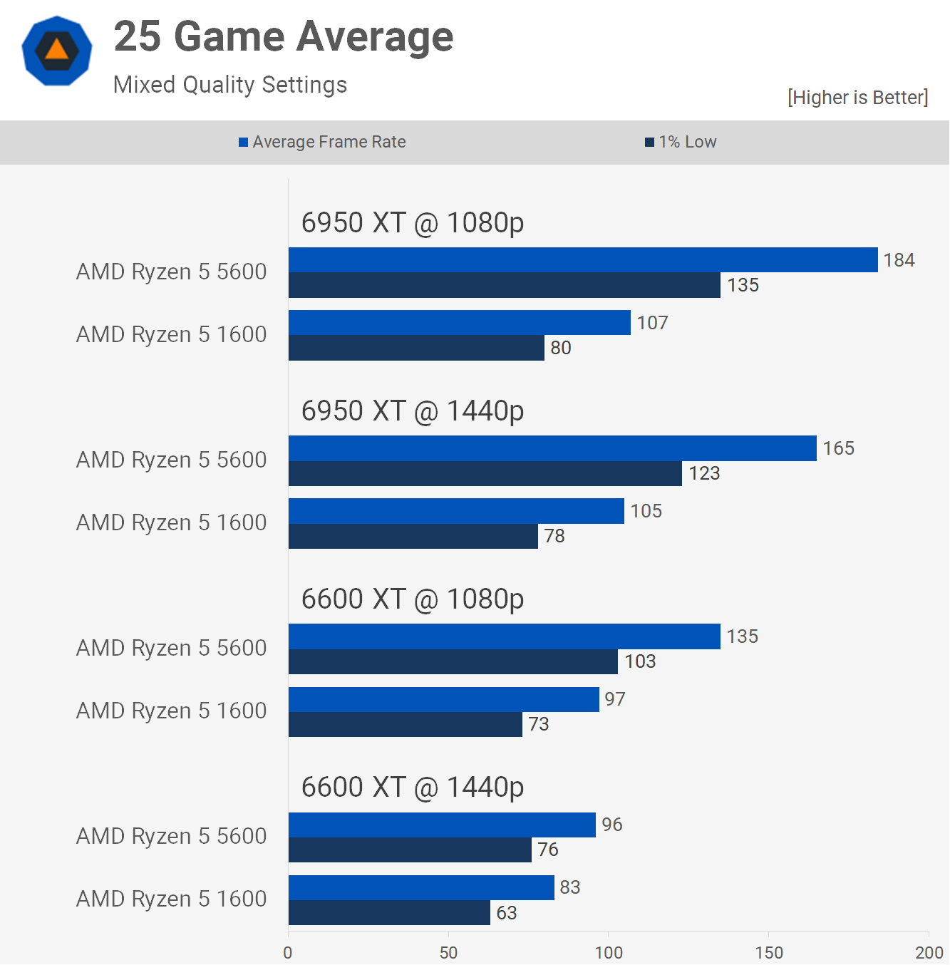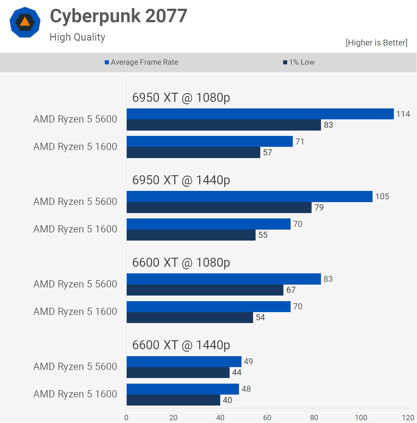 Dar dacă doriți acea experiență cu rată de reîmprospătare ridicată, va fi necesar un upgrade. Am maximizat 6950 XT la 1440p cu 5600, oferind un salt de performanță de 50% și apoi 73% la 1080p.