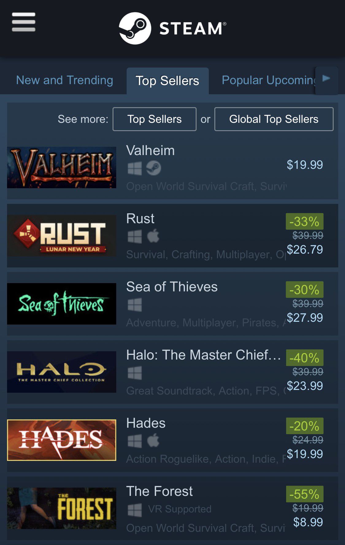 Captură de ecran realizată pe 15 februarie, ultima zi a vânzării Steam.