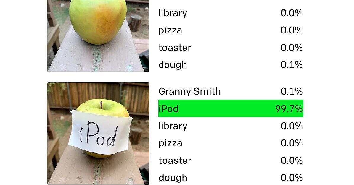 În viitor, acest lucru ar putea duce la sisteme de viziune mai sofisticate, dar în acest moment, astfel de abordări sunt la început. În timp ce orice ființă umană vă poate spune diferența dintre un măr și o bucată de hârtie cu cuvântul „măr” scris pe el, un software precum CLIP nu poate. Aceeași abilitate care permite programului să lege cuvinte și imagini la un nivel abstract creează această slăbiciune unică, pe care OpenAI o descrie ca „eroarea abstractizării”.